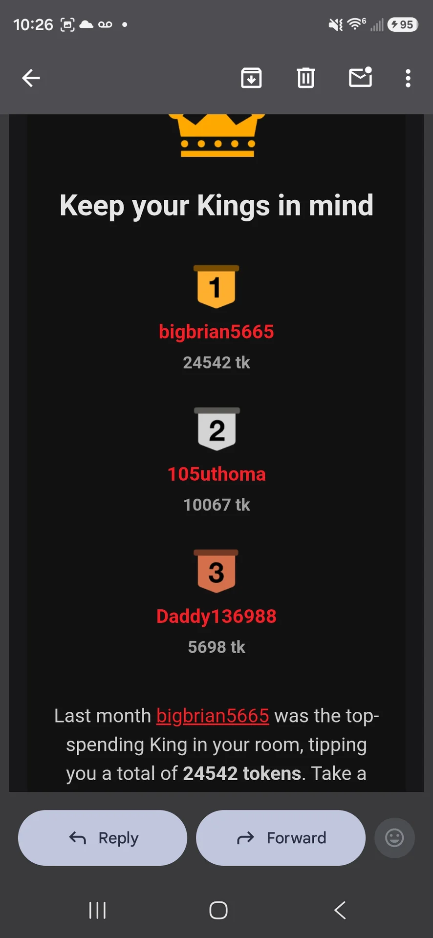 Thank you SO MUCH to 105uthoma for beating my highest tipper of all time in one show! Record was at 34,000tk and he beat it by 5,000 tk at 39,000 tk!!! Thank you for always being so generous to me, you have helped me than you know and I am forever grateful!!!